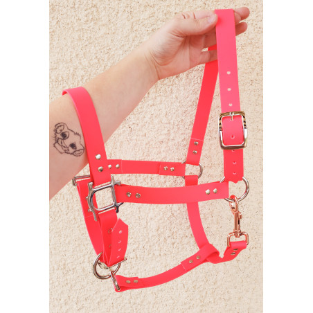 Licol en biothane, très solide avec boucle, d'attache pour longe. Se nettoie facilement à l'eau clair et au savon.